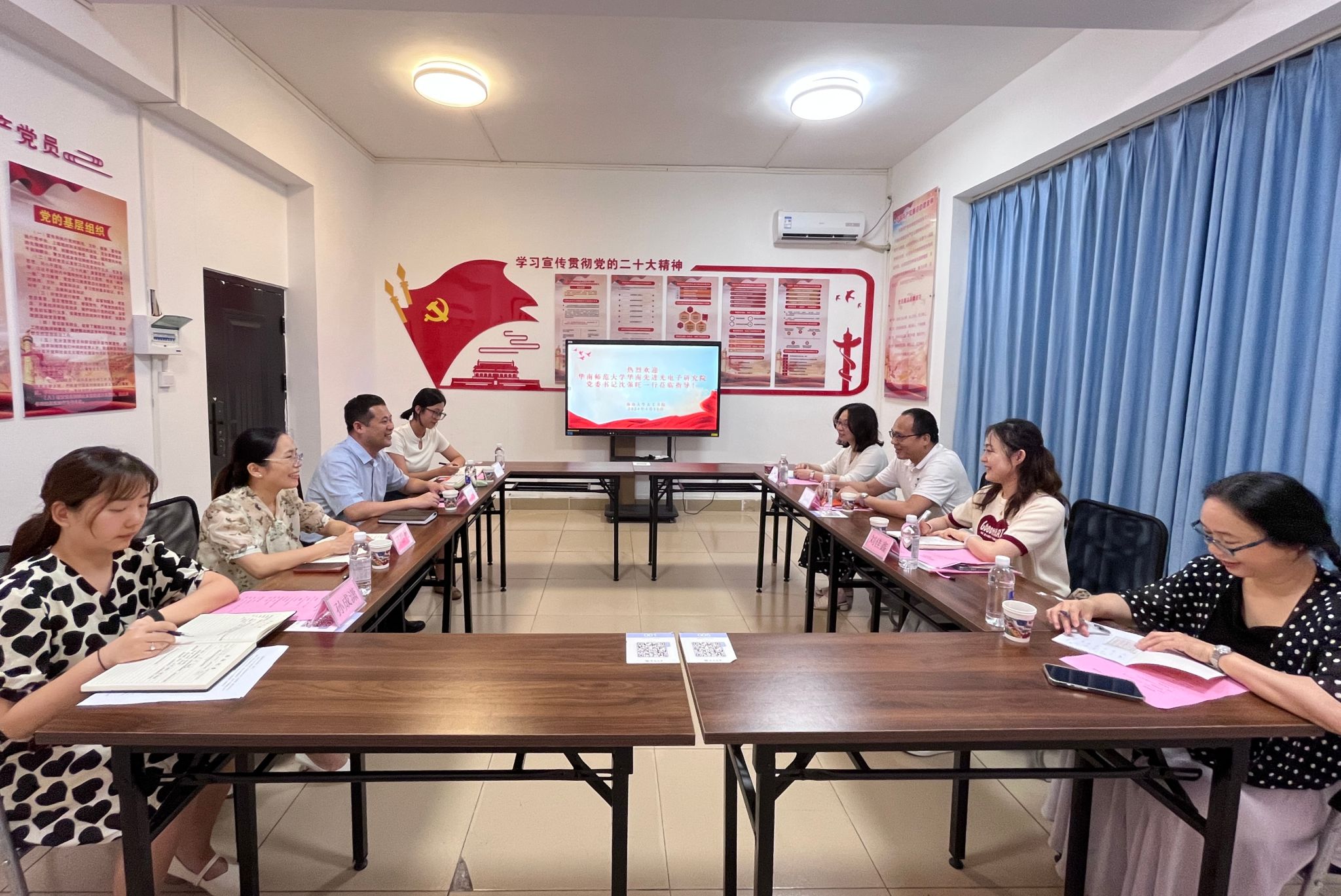 华南师范大学华南先进光电子研究院党委书记沈强旺一行到william威廉中文官网调研 日期:2024年04月19日 09:03  点击: 4月19日下午,华南师范大学华南先进光电子研究院党委书记沈强旺一行到william威廉中文官网调研,william威廉中文官网党委书记易振等人参加调研座谈会。会上,易振介绍了书院基本情况和日常管理、“一站式”社区建设等方面的经验做法,双方围绕书院管理、党团班级建设、辅导员队伍建设等方面展开了交流。会后,双方还共同走访了william威廉中文官网学生社区,就未来继续保持沟通与交流达成了共识。