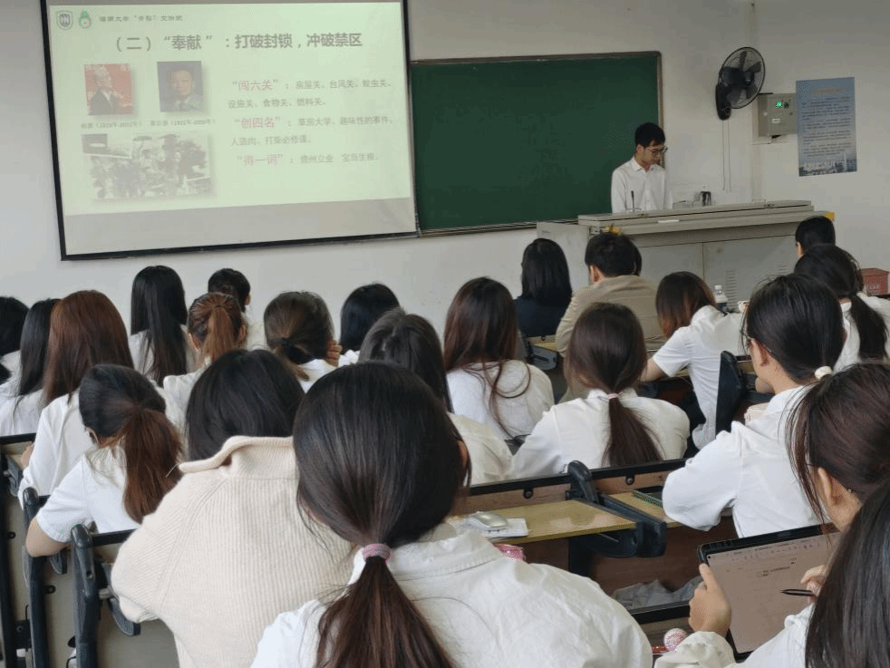 宣讲会上,杨嘉豪同学从海南大学往昔岁月的“台前幕后”与今朝宏图的“砥砺奋进”两个维度,勾勒出一幅幅“海大人”勇担使命、踔厉奋发的壮丽画卷,激励天工学子践行当代青年的使命担当。海大老一辈开拓者,在国家亟需之时,毅然决然投身于橡胶自给的研究与实践中,以坚韧不拔的毅力,在荒凉的土地上播种希望,为国家的独立自主和经济发展奠定了坚实的基础。而今,新一代的“海大人”正接过历史的接力棒,在海南自由贸易港建设的浪潮中勇立潮头,续写着“海大精神”的辉煌篇章。
