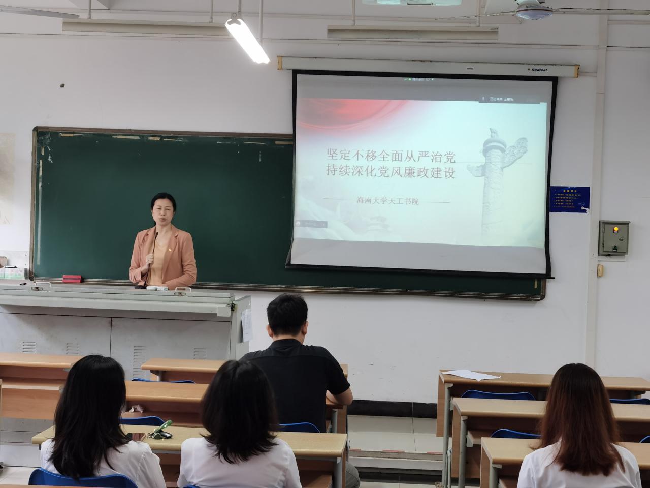 欧少红副书记以“坚定不移全面从严治党,持续深化党风廉政建设”为主题,带领党员们学习中共中央办公厅《关于加强新时代廉洁文化建设的意见》和海南大学加强清廉校园建设工作相关文件。她指出,高校承担着为党育人、为国育才的历史使命,是涵养廉洁文化的重要阵地。然而高校在基建工程招标、科研经费使用、招生录取等方面存在廉政风险,在学生评奖评优、入党入团、考研保研等环节容易滋生腐败,在大学生中开展廉政教育十分必要。通过案例鼓励同学们向榜样学习,做廉洁新人。最后,她强调,作为一名学生党员,要以学为先,用先进的思想武装头脑,牢固树立法纪意识;要从严修身,提升拒腐防变的政治定力;要创先争优,提升党性修养,主动担当作为,为书院党建高质量发展贡献自己的一份力量。