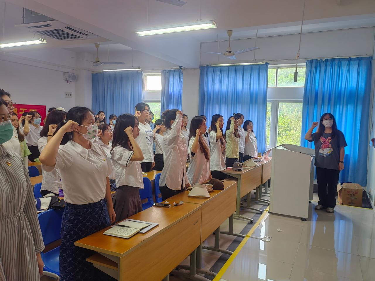 支部为所有毕业生党员送上了精美的毕业礼物,寄语毕业生党员们在以后的工作生活中能够不忘初心,砥砺前行。活动在全体党员共同重温入党誓词中落下帷幕。活动结束后,支部书记何美丹为毕业生党员做组织关系转接专题教育。