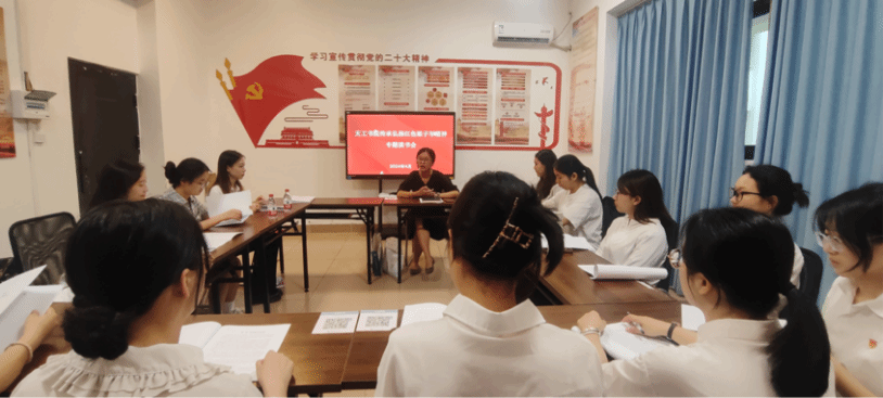 会上,全体党员一同学习了“中国工农红军第二独立师女子军特务连”的诞生和战斗历程,深刻感悟“敢为人先、英勇斗争、信念坚定、忠诚为民”的红色娘子军精神,并围绕红色娘子军精神的弘扬展开了热烈讨论。