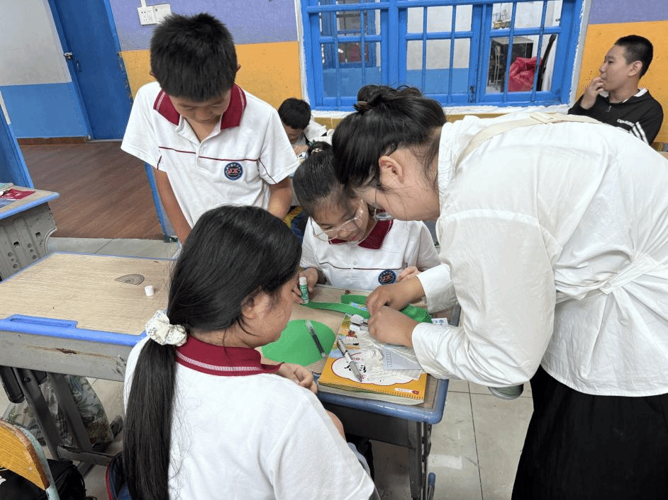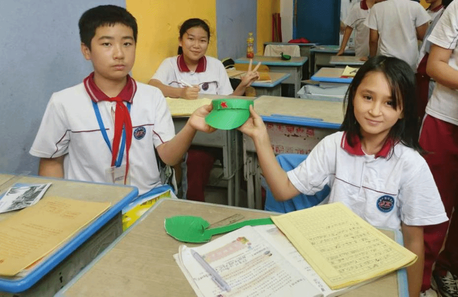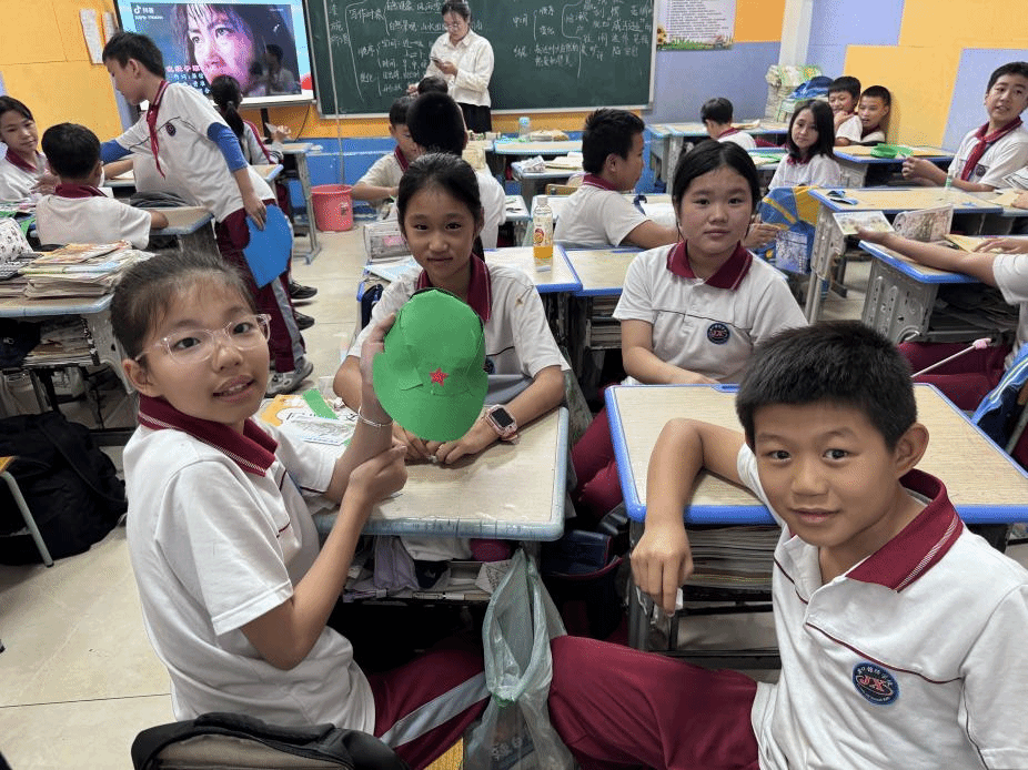 课堂上,通过讲述红色娘子军英勇事迹、教唱《红色娘子军连歌》、组织有奖知识竞答、分组制作红军帽等环节,加深了该班同学对红色娘子军精神的领悟,增强了他们的爱国热忱与民族自豪感。