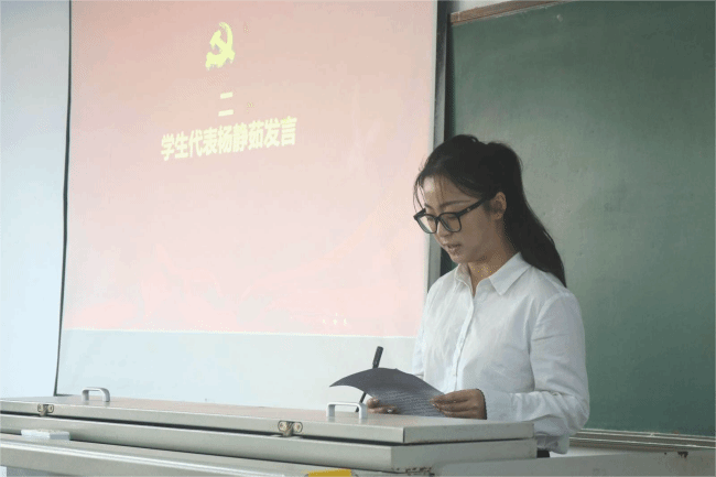 仪式在庄严的国歌声中拉开帷幕,杨静茹同学代表全体学员作表态发言,郑重承诺将遵守党课培训纪律,认真学习理论知识,加深理解和领会,强化理想信念和使命担当。