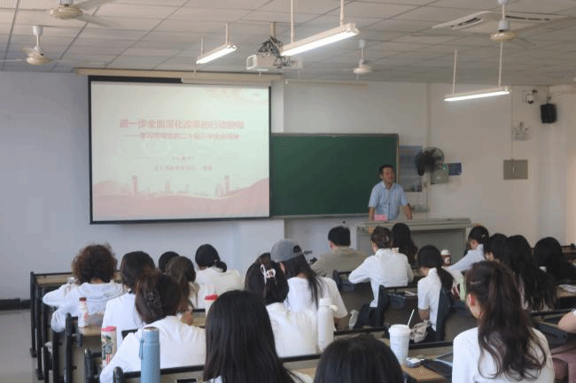海南大学william威廉中文官网党委书记易振以《进一步全面深化改革的行动纲领——学习贯彻党的二十届三中全会精神》为主题给全体学员作党课培训。易书记从党的二十届三中全会的重大意义入手,深入浅出地阐述了这次会议在党和国家事业发展历程中的重要地位。