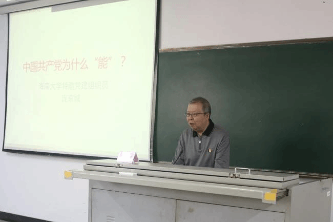 原海南大学政治与公共管理学院教授、海南大学特邀党建组织员庞京城老师为发展对象作培训第二讲——《中国共产党为什么“能”》。庞老师以宏大的历史视野和深刻的理论分析,围绕“真理的力量,使命的力量,人民的力量,创新的力量,组织的力量,骨干的力量,自我革命的力量,精神的力量,包容的力量,道义的力量”十个方面,系统阐述了中国共产党是如何发展成为世界上最大的马克思主义政党的,以及是如何带领中华民族实现从站起来、富起来到强起来的伟大飞跃。