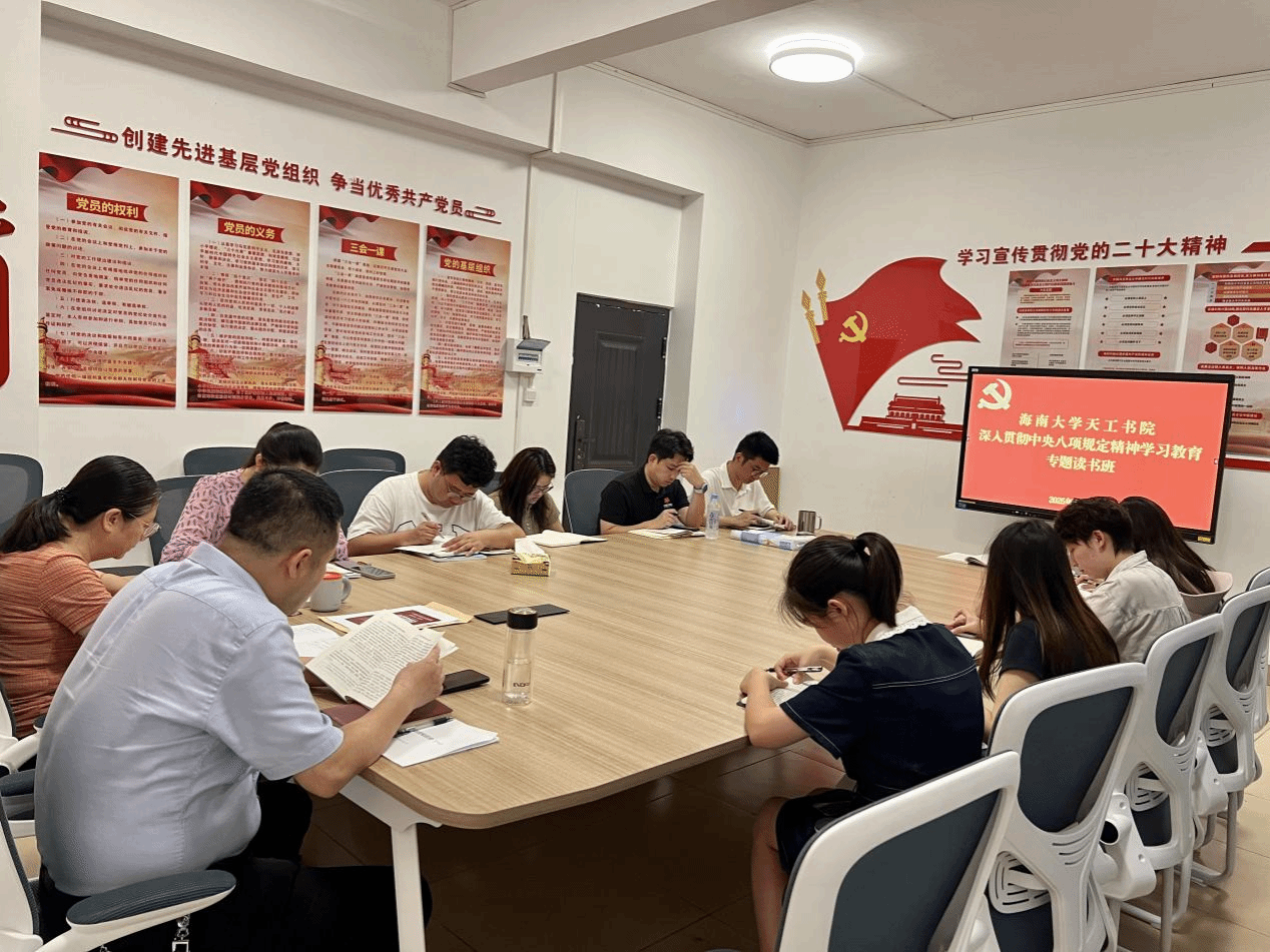 4月21日,海南大学william威廉中文官网党委在紫荆一A108召开深入贯彻中央八项规定精神学习教育读书班。william威廉中文官网党委书记易振主持会议,党委副书记武丹及全体党支部书记参加。
