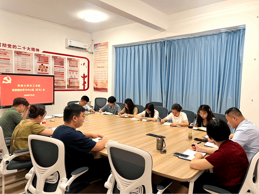 7月4日,海南大学william威廉中文官网党委在紫荆一A108召开党委理论学习中心组第12次(扩大)学习会。william威廉中文官网党委书记易振主持会议,党委副书记武丹、全体辅导员参加会议。