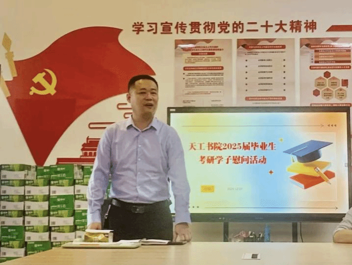 活动中,易振结合经验分析了当前考研形势,肯定同学们积极进取的求学精神,表达了对考研学生的殷切期望与美好祝愿,鼓励同学们坚定信心、全力以赴、科学备考、早日上岸。