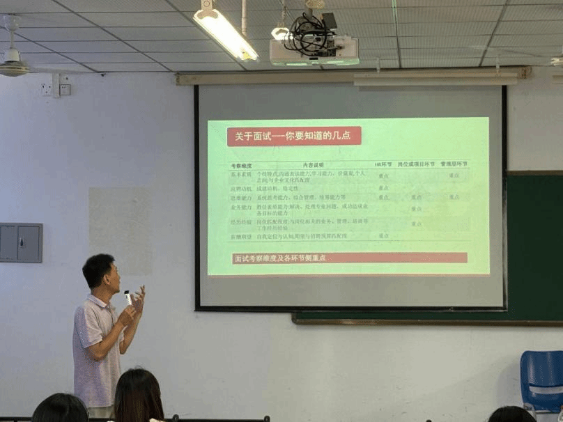 林书锐老师以其丰富的互联网行业招聘经验,为毕业生带来了精彩的面试技巧分享。他重点指出充分的面试准备、讲究说话的艺术、良好的自我介绍等五个方面是完成好一场面试的决胜点;并建议毕业生在求职中要学会挑选合适的面试时间,准备好多份合格的简历,应对好常见的面试问题和陷阱。