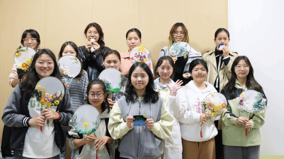 干花团扇制作现场气氛轻松愉快,同学们在制作过程中互相交流创意,认真设计造型,分享制作心得。一朵朵花在同学们的巧手下,被精心粘贴在团扇上,形成了精美的图案。同学们认真地制作自己心爱的手工,将自己的创造力展现在艺术作品中。