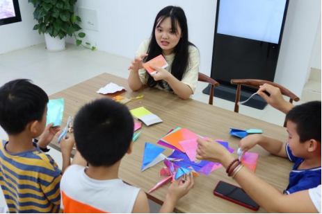 活动中,党员带领社区孩子们学习和春天相关的诗词,欣赏春天美景的图片,分享春季的感受;教小朋友们用彩色卡纸进行简单的手工折纸活动,将优秀传统文化融入活动内容,带领小朋友们感受春日的美好,做好美育教育,引导孩子们从小树立保护生态环境的意识。