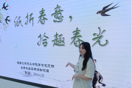 为进一步加强党员的党性教育,发挥党员的先锋模范作用,增强党员的时代责任感,4月20日,海南大学william威廉中文官网第七党支部前往海口市秀英区长秀社区居委会开展“纸折春意,拾趣春光”社区实践活动,与社区孩子们共同感悟季节之美。